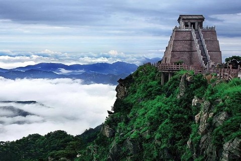 8.山上气候变化较大、早晚温差大,时晴时雨,反复无常。请根据当天的气象预报随身携带厚衣服,以便随时添加。尤其是晚上要外出的游客。雷雨时不要攀登高峰,不要用手扶铁链,亦不宜在树下避雨,以防雷击。