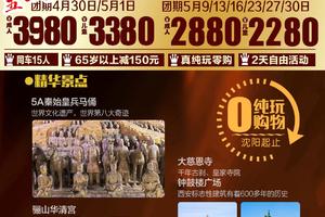 演出《复活的军团》:(自理 298元/人,演出时间约 60分钟)中国首部实景沉浸式多媒体战争史诗剧,由中国著名导演金铁木先生执导,该剧共四幕十场,通过廷议,征兵,动员,家书,攻城,牺牲等剧目,融入家书抵万金,儿行千里母担忧,新婚别等情感,让游客身临其境的感动家国情怀,唯有战争才能结束战争,才能开拓万世太平的铁血强国精神。
