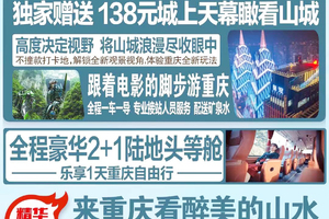 步行街中心地带。 观赏【洪崖洞风貌区】 (游览时间不低于30分钟)江景和城市风貌完美融合,以75米高的超常 落差,顺崖而上,高低错落、依山而建, 成为备受世界瞩目的,独特靓丽的城市名片。坐拥城市旅游 景观、商务休闲景观和城市⼈⽂景观于⼀体。 以具巴渝传统建筑特⾊的"吊脚楼" ⻛貌为主体,依⼭就 势,沿江⽽建,让游客叹为观止(若观看夜景,需自行回酒店)。 游世界最大跨径单塔单索面斜拉桥【千厮门嘉陵江大桥】千厮门大桥看起来像是一把织布的梭 子,既有一剑指天的阳刚之气,又有线性流畅的和谐之美, 充分融入重庆山水之中, 完美体现了“山 水城桥”之美, 成为重庆数不清的桥梁中的颜值担当。 赠送游览【城上天幕·乐游观光塔】在这里,您不仅可以观赏到重庆壮丽的城市天际线,将长江 两岸的美景尽收眼底, 领略到“重庆外滩”独有的浪漫与优雅,感受到山城、江城、不夜城的独特魅 力,还可以打破常规, 体验心跳加速的感觉。 | |||||