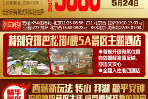 D1 沈阳北站乘 K54 次列车 21:25 出发前往北京站 X X X 火车上 D2 北京西客站 20:10 乘坐高原有氧列车 Z21 次前往圣城-拉萨 X X X 火车上 D3 车览青藏高原秀美的景色 X X X 火车上 D4 抵达拉萨 ,接站入住酒店。(接站人员会提前一天短信通知您 ,请注意查收短信 ,火车上信号不稳定 ,若没有接收到短信请联系拉萨升级有氧高档型酒店出团通知书上的接团紧急联系人。如果您平时没有使用短信的习 惯请报名的时候告知 ,我们会电话联系您) |