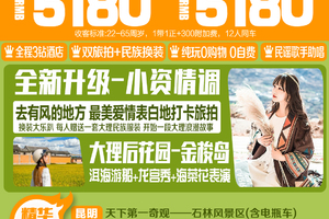 | 演绎 ,车上客人可参与点歌也可以自己献唱 ,让音乐、欢声笑语、友情交融 ,以及微风拂面 ③赠送 6 张旅拍电子照片 打卡电视剧“去有风的地方”最美爱情表白地 ,留下自己最美好的瞬间 ④赠送航拍视频 专业摄影师为全团拍摄一段旅行日记视频、记录客人最美好的每一分每一秒 晚餐品尝大理特色餐《南涧跳菜》一餐经典的非遗传承美食大秀。后入住酒店休息。 | ||