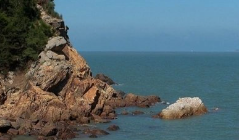 【金龟园】俗称独立砣子,因外形象一只睡卧于月亮湾沙滩上的龟而得名。建在“金龟园”制高点上的仿古亭叫望海亭。站在望海亭上,徐徐的海风抚摸着你,顿觉暑气全消,心旷神怡。凭栏北望,犬齿一样起伏连绵的山峦紧紧拥抱着大鹿岛村,美丽的民居掩映在绿树苍翠之中,好像是一幅美轮美奂的水粉画,铺展在你的面前;凭栏南眺,海天一色,一碧万顷、苍苍茫茫、浩瀚无边,霎时好像入了仙境,世间喧嚣尽抛脑后。