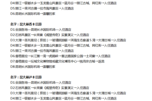 (4)住宿:全国连锁酒店标间五晚(6日游);全国连锁酒店标间六晚(昆大丽香8日游);全国连锁酒店标间五晚+一晚火车硬卧(昆大丽泸8日游);