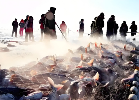 【缤纷景点】查干湖景点缤纷多彩,冬捕现场震撼,千余人冰上作业,鲜鱼破冰而出 。高娃广场可览湖全貌,游船码头赏碧波荡漾 。