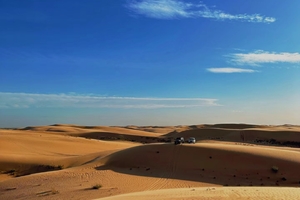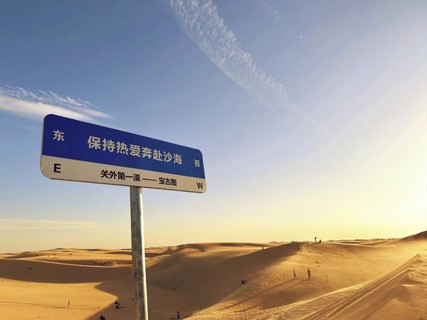 行程三:宝古图沙漠,尘封了辽代广平淀千年古战场的金戈铁马,演绎了美丽姑娘诺恩吉雅百年传唱的似水柔情,涵养着“胡燕辽蒙”优秀的民族文化,铭刻着历史与现实的美丽传承。茫茫的沙海中留下了一串串踏实而清晰的脚印,炙热的沙海将热气透过双脚沁人心脾,我们都醉倒在沙海中。