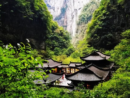 酒店用早餐,后乘车前往武隆(高速路行驶时间3小时左右),抵达后享用午餐—特色草原火锅。餐后前往游览国家AAAAA级风景名胜区【天生三桥】(游览时间不低于90分钟)(统一乘坐换车进入景区,必须乘坐)景区以其壮丽而独特的“三桥夹两坑”景观称奇于世。世界最大天生桥群和世界第二大天坑群相映生辉,坑与坑之间以桥洞相望,桥与桥之间以坑相连,规模宏大,气势磅礴,瑰丽壮。是张艺谋06年电影大片《满城尽带黄金甲》唯一外景地,亲临拍摄地、观看投资200万修建的唐朝古驿。