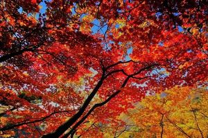 本溪每到10月枫,叶红了的时候,漫山遍野的枫,叶红了山,在半个多月的红叶观赏期里,红、黄、绿色的各式树叶或挂在枝头或飘落在沟底溪畔,颜色极为丰富,是东北地区不可多得的季节性景观。
