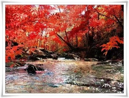 洋湖沟,是”中华枫叶之路“最美的一段。上世纪九十年代,已有大批画家追寻美景,爬山涉水来到比写生,故又称为“画家村”。远看漫长山遍野,颜色各异的红叶高低错落很是好看,尤其在靠近水边有倒影的地方,好像是画中画一样,仿佛在本已作好的油画里又凭空增添了想像的空间,一旦置身这段画廊般的山路,树影山色带给你的感觉可以说极为震撼,让你的心也随之沸腾。