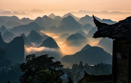 晨起时,一声鸡鸣划响云空,远看百里瑶山,山峦起伏,云烟笼罩,若隐若现,仿若人间仙境。当风吹向瑶寨,一时间,风云涌动,云海奇观精彩演绎,绝美风光尽收眼底。此时出发,从大寨门直上,登顶至瑶族祖庙,是不错的选择。穿上瑶族服饰,佩戴独特的瑶族银饰,摇身一变成为瑶族姑娘/瑶族汉子,想必旅途更添趣味。
