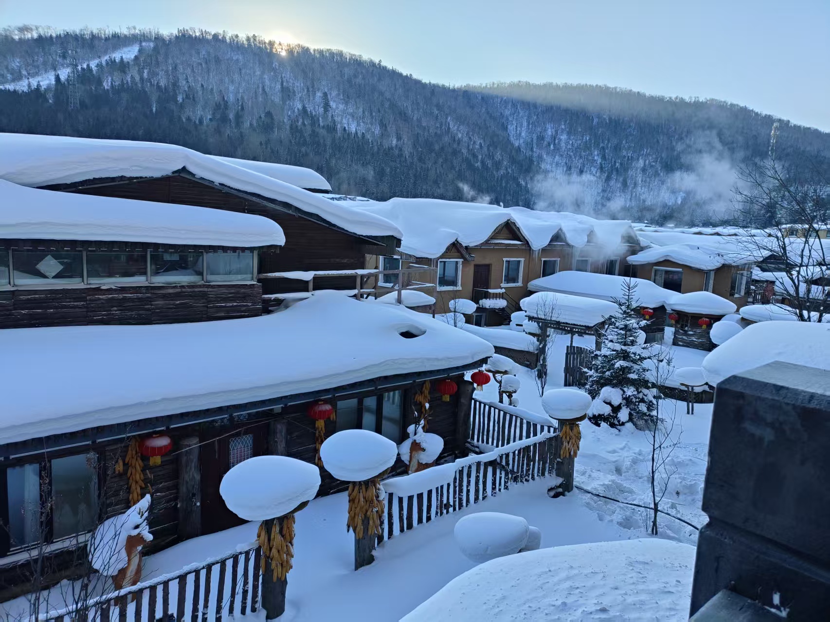 【网红打卡—雪韵大街】 漫步于雪韵大街 ,低矮的茅草房 , 晶莹剔透的冰挂 ,洁白无瑕的雪蘑菇 ,炊烟缭绕 ,灯笼高挂 ,这里是人间最美最向往的地方 ,摄影爱好者的天堂 ,尽情玩味大自然赋予冰雪胜景的绝美感受 …行行摄摄在雪乡,这里随处可见的小雪人 , 自然天成的雪蘑菇 ,雪房子 ,雪梯子 ,整个村子袅袅炊烟;席地而坐的冻梨、冻柿子 ,登上枝头的糖葫芦; 雪乡纯白无暇 , 自然天成 长枪短炮来! 来! 来! 来这里采风摄影 ,来这里凹造型.... 【雪乡棒槌山观光栈道】 俯瞰整个雪乡 ,拍摄独特的雪乡美景 ,在色彩斑斓五光十色的灯光下仿佛进入了童话世界一般! 真是此景只是雪乡有 ,异地他乡不可求。
