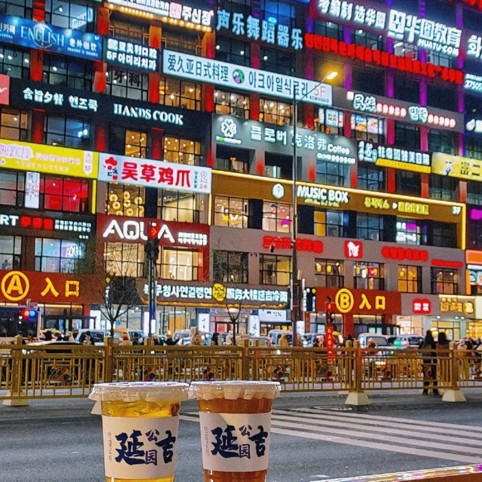 乘车前往延吉,【网红墙】墙上设有 75 家商铺,墙上的商铺招牌使用中文和朝鲜文,展示了朝鲜族的民族特色。由于靠近延边大学,网红墙吸引了来自朝鲜、韩国、日本、俄罗斯等国的国际游客,使其成为一个国际性的网红打卡地。