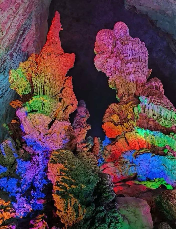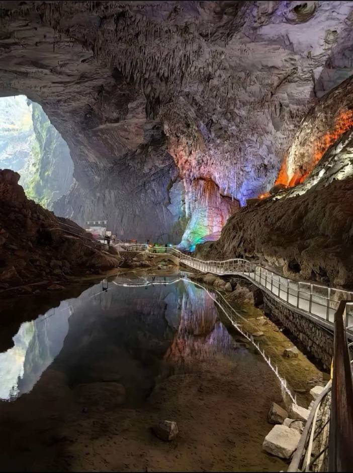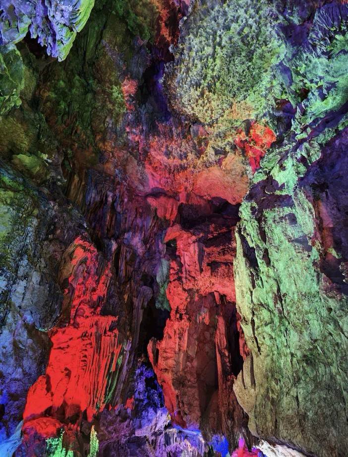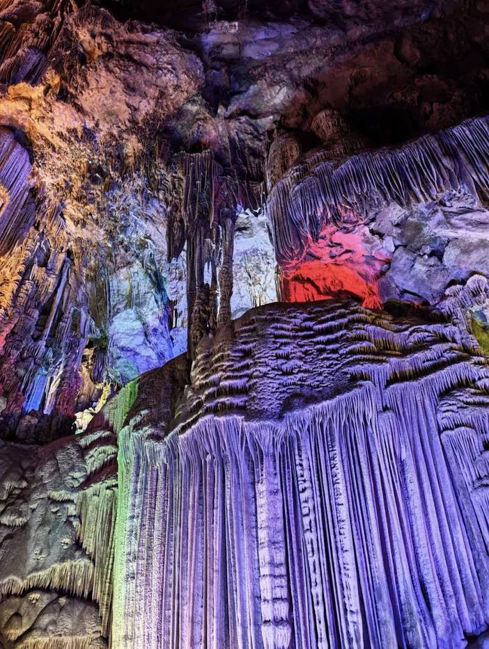 银子岩是典型的喀斯特地貌,整个溶洞贯穿十二座山峰,汇集了不同地质年代的钟乳石,闪烁像银子一般的光芒。有种说法是“游了银子岩,一世不缺钱”,也吸引了不少游客前往。溶洞由外自内分为下洞、大厅、上洞三大部分。沿着参观路线一路往上走,会越来越开阔,景色也是逐渐展开,彩色的灯光照耀下也格外好看。