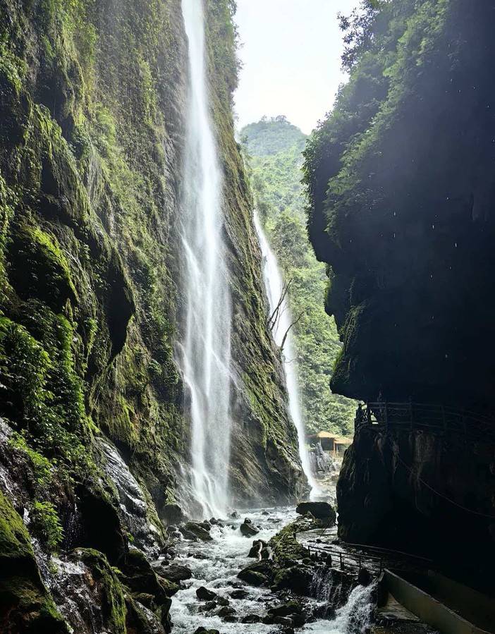 午餐后前往古龙山,游览国家AAAA级景区、四峡三洞世界级奇观—【古龙山大峡谷】(游览时间不低于120分钟),徒步穿越古龙峡谷、全长1180米美轮美奂的古龙溶洞和神秘莫测的地下暗河及新桥峡谷瀑布群。游览形态各异的溪流奇石,单级落差68米的水帘瀑布,单级落差128米凌空飞泻、蔚为壮观的古龙大瀑布,千姿百态的悬崖绝壁,美轮美奂的古龙溶洞,美不胜收的钟乳奇石及神秘莫测的地下暗河奇观,12个美如画卷的瀑布群景观,后前往硕龙/下雷,晚餐后入住酒店。