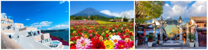 早餐后,乘车前往大理(大约2小时左右),前往大理最具网络人气打卡地,中国版“圣托里尼”-【理想邦】,这是一座如诗如梦的世外聚落,这是一座洒落人间的天国福境;面朝洱海,春暖花开,完成对庸常生活的一次越狱。乘车前往【大理花海】(游览时间30分钟)那里的空气比世界上其他地方的都更加清新,而你在云海芳草可以找到你以前从未见 过的明净色彩。红白相交的格桑花、风中摇曳的勿忘我、金色醉人的金鸡菊、红蓝相映的鼠尾草... ... 一年四季,不同种类的苗圃随季绽放,鲜花成海,延绵伸展至洱海,再加上漂浮着的白云,湛蓝的天空,这就是大理的花海漂浮。后乘【敞篷吉普车游网红打卡地】(游览时间约30分钟)感受被誉为最美环海路,心花路放,海天一线。。后乘车前往国家AAAA级旅游景区【大理古城、洋人街,电瓶车自理35元】,大理古城位于云南省西部,又名叶榆城、紫城。古城其历史可追溯至唐天宝年间,南诏王阁逻凤筑的羊苴咩城,为其新都。古城始建于明洪武十五年(1382年),占地面积3平方公里。大理为1982年2月8日国务院公布的中国首批24个历史文化名城之一。这里传承了1200多年的古南诏历史,“五华楼”、古老的城墙、四道城门以及旧时的巷道,无一不是南诏古国文明的历史缩影。自费游览【洱海金梭岛】(游览时间约120分钟,自理费用180元/人)游客乘坐旅游大巴抵达停车码头→乘坐豪华玻璃钢游艇停靠金梭岛,游客登临千年古渔村金梭岛→由景区讲解员带领大家参观游览金梭岛海底溶洞龙宫→参观岛底溶洞宫奇特各异的龙形钟乳石→观看“魅力金梭海菜花”渔文化大型歌舞表演。