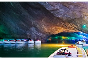 抵达本溪水洞,这个被世人誉为“世界第一长地下充水溶洞”的自然奇观,就在您的眼前。本溪水洞,拥有40万年的历史,见证了地球漫长岁月的变迁。它位于侠柯山中,山脉连绵起伏,层峦叠翠,宛如一幅天然的山水画。洞口前的太子河静静流淌,为这片古老的溶洞增添了一份灵动。