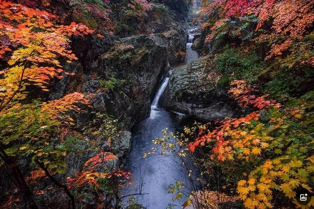 本溪每到10月枫,叶红了的时候,漫山遍野的枫,叶红了山,在半个多月的红叶观赏期里,红、黄、绿色的各式树叶或挂在枝头或飘落在沟底溪畔,颜色极为丰富,是东北地区不可多得的季节性景观。