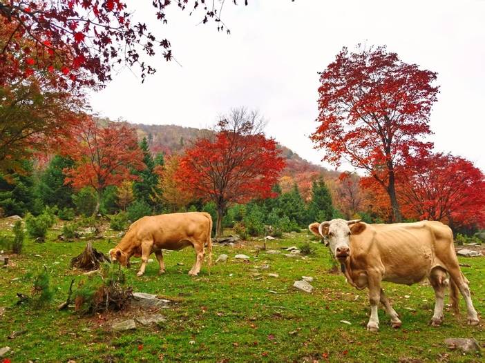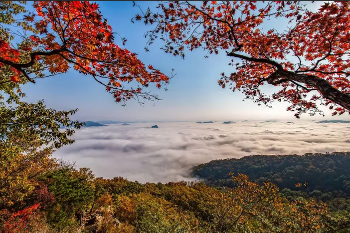 大牛沟位于辽宁省宽甸县大牛沟村。云海的成因皆因为这村子四面环山,浑江绕山而过,水汽蒸腾,却无法散去。云海主要集中在春季、及秋季,其中以秋季~红枫+云海为最美,其实如果云海时间能达到100天就已经很了不起了,著名的四川牛背山也不过如此!