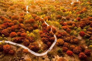 在内蒙古通辽市科左后旗,藏着一处秋日宝藏——乌旦塔拉五角枫森林公园。每年10月中旬至下旬,这里便成了色彩的海洋,10万亩五角枫褪去翠绿,换上红、黄、橙的盛装,搭配沙漠与森林相拥的独特地貌,成为无数游客追寻的秋日限定美景。