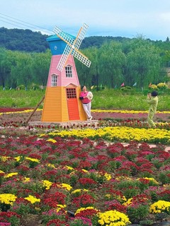 💐💐景点2️⃣:美丽的姑嫂城下步入球菊花海,便如同踏入了一场梦幻的色彩盛宴。红的似火,燃烧着秋日的热情;粉的如霞,晕染出浪漫的氛围;黄的像金,闪耀着丰收的光芒 。它们圆润可爱,紧紧簇拥在一起,每一朵都饱满而精致,像是大自然精心雕琢的艺术品,装点着整个世界。