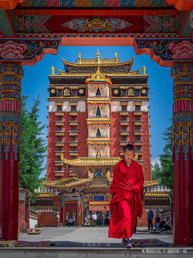 随后到达【郎木寺镇】(车程约50分钟)郎木寺不是寺,是镇名。郎木寺镇被白龙江源头小溪划分为两部分,四川的“安多达仓郎木格尔底寺”和甘肃的“赛赤寺”在这里隔江相望。我们身着藏装进行【旅拍】,身着华丽藏袍,在郎木寺金顶下定格经幡飞扬,让雪山、草原与玛尼堆见证我们化身高原儿女的诗意瞬间。
