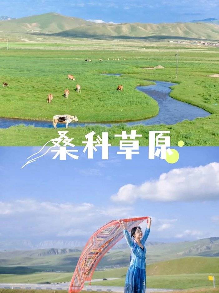随后到达【桑科草原】夏日的桑科草原,是大自然铺展的诗意画卷。碧绿草甸上野花缤纷,牦牛与骏马悠闲踱步,远处青山叠翠、雪山映日,牧民帐篷的炊烟混着青草香飘向天际,每一帧都似梦栖的世外桃源。