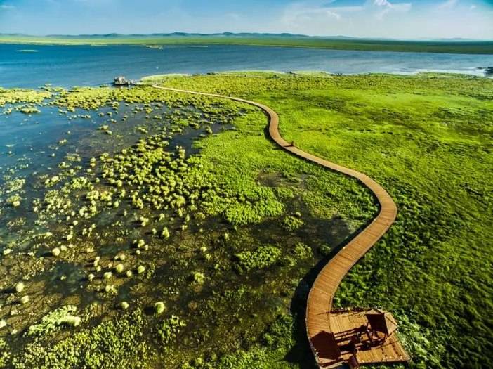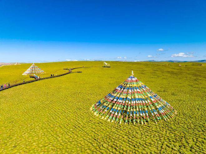 然后,前往【花湖湿地】。花湖是热尔大坝草原上的一个天然海子。湖畔五彩缤纷,好像云霞委地,而湖中则开满了水妖一样的绚丽花朵,这种植物看起来平淡无奇,在雨水充沛的八月把纯蓝的湖水染成淡淡的藕色,时深时浅,像少女思春时低头的一抹酡红。漫步在木栈道上,湖水透彻的蓝,珍稀飞禽在湖上嬉戏,草原上风云际会。