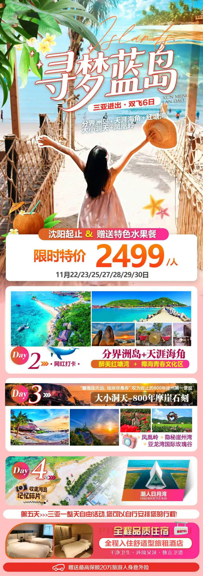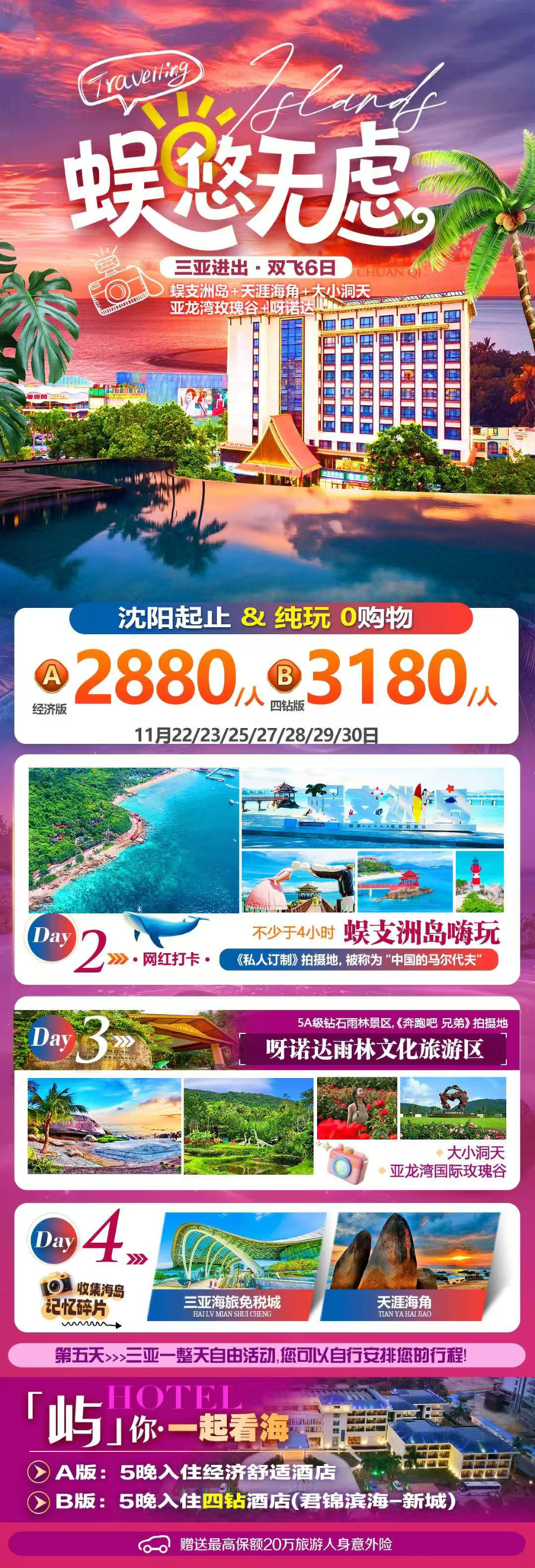 海南:蜈支洲岛,天涯海角,南山文化,亚龙湾,候鸟团,