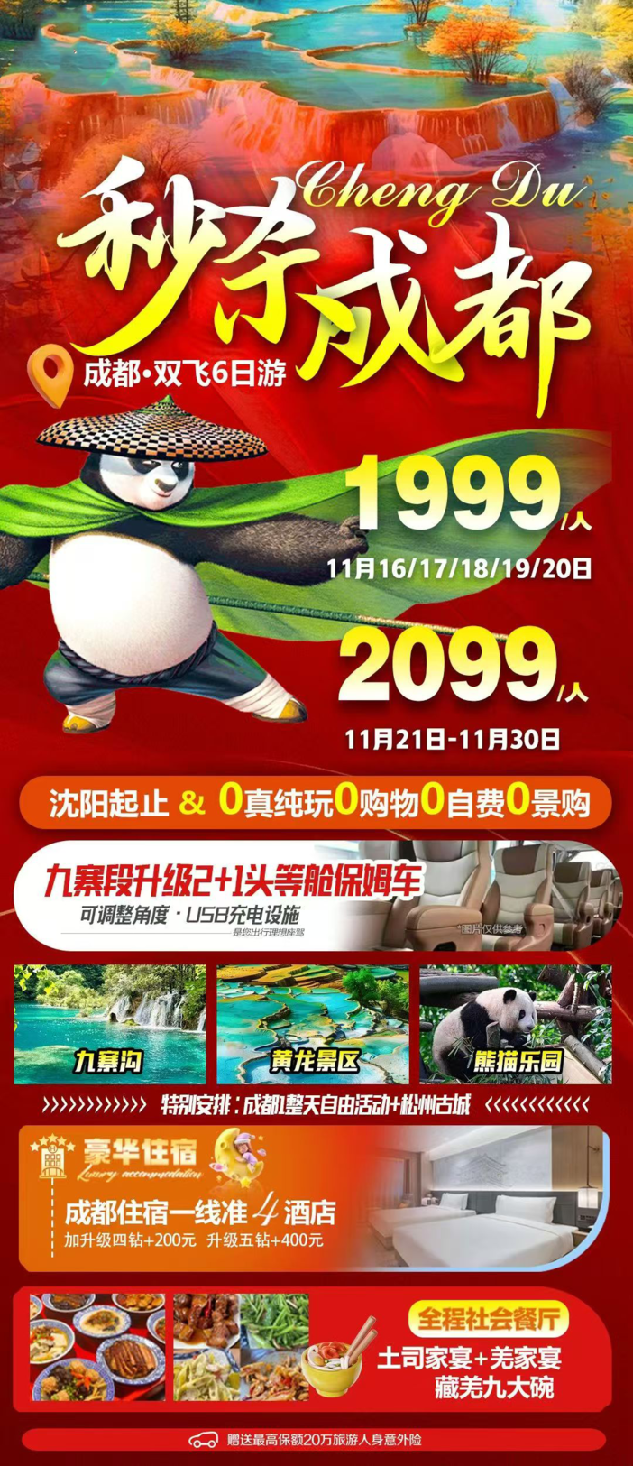 四川:峨眉山,九寨沟,乐山大佛,熊猫乐园,黄龙,