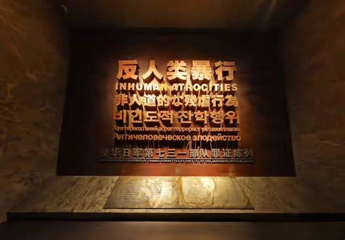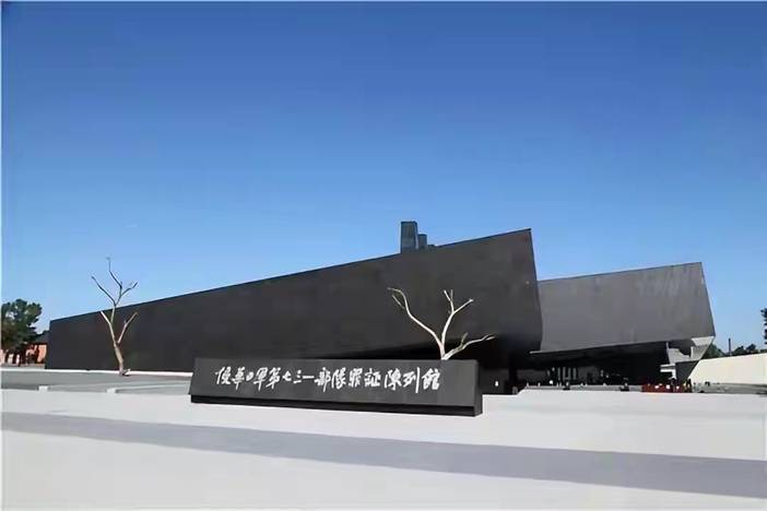 侵华日军第七三一部队罪证陈列馆始建于 1982 年,于 1985 年8 月 15 日在原 731 部队本部大楼的东侧正式对外开放,原馆陈列照片 120 余幅,陈列文物 200 余件。侵华日军第七三一部队罪证陈列馆新馆于 2015 年8 月 15 日正式对外开放,在纪念世界反法西斯胜利七十周年和中国人民抗日战争胜利七十周年之际对外开放 。七三一新馆建筑设计方案简称“ 黑盒” ,主要创意以大地的割裂营造震撼的灾难场景,让人们在裂痕中体验到 731 部队的野蛮和反人类罪行。在象征四方楼的原形基础上进行切割、扭转、塌陷、 以制造矛盾的形体关系与基地现状进行碰撞,强化了反人性的空间体验。表达了“ 731 ”杀人魔窟的罪证与现实世界的强烈冲击,作为记录日军犯下条条罪证的黑匣子,在大地上构成挥之不去的黑色殇痕。