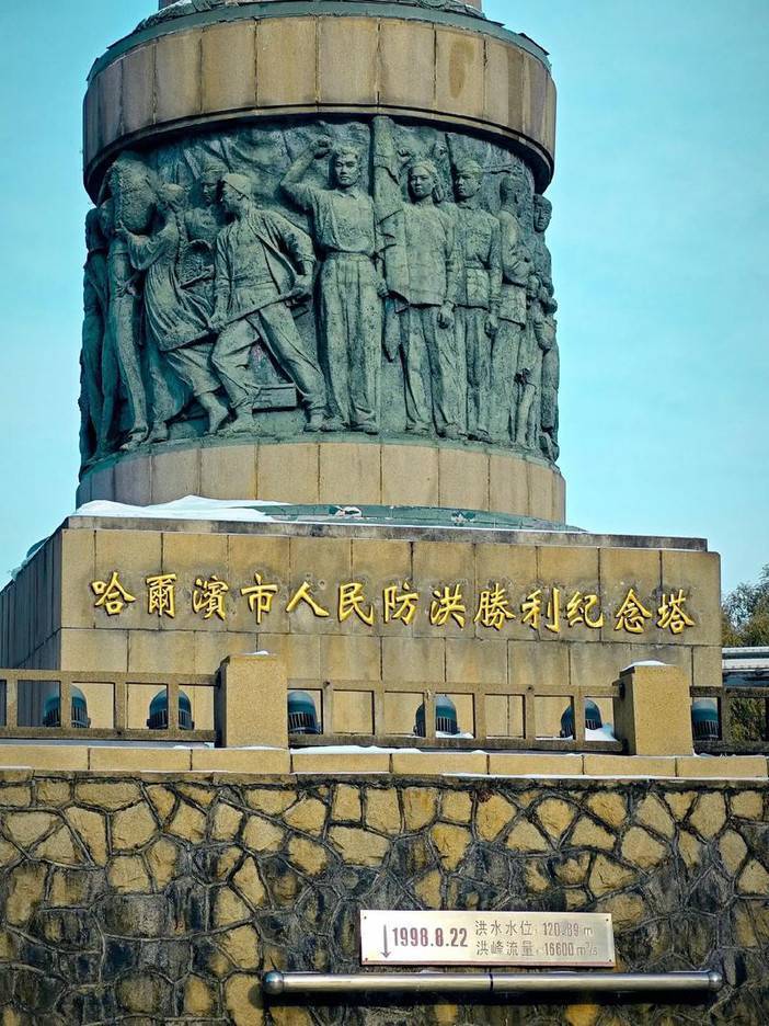【防洪纪念塔】 哈尔滨人民战胜汹涌肆虐的洪水的标志 , 既是对那段艰苦岁月的缅怀 ,也是对哈尔滨人民英勇抗洪精神的颂扬。