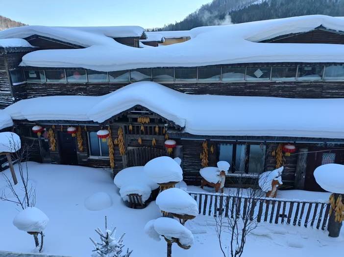 【网红打卡—雪韵大街】 漫步于雪韵大街 ,低矮的茅草房 , 晶莹剔透的冰挂 ,洁白无瑕的雪蘑菇 ,炊烟缭绕 ,灯笼高挂 ,这里是人间最美最向往的地方 ,摄影爱好者的天堂 ,尽情玩味大自然赋予冰雪胜景的绝美感受 …行行摄摄在雪乡,这里随处可见的小雪人 , 自然天成的雪蘑菇 ,雪房子 ,雪梯子 ,整个村子袅袅炊烟;席地而坐的冻梨、冻柿子 ,登上枝头的糖葫芦; 雪乡纯白无暇 , 自然天成 长枪短炮来! 来! 来! 来这里采风摄影 ,来这里凹造型....