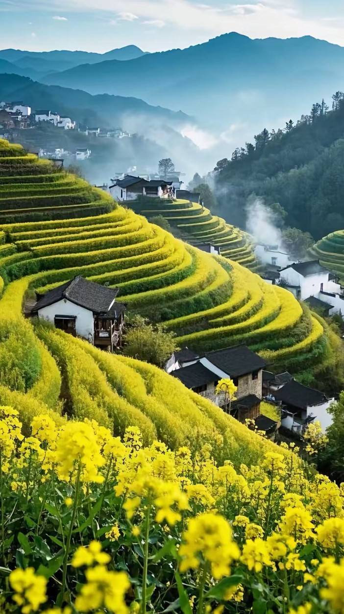 中国最美符号梯田油菜花海婺源篁岭(梯云村落、四季花海)