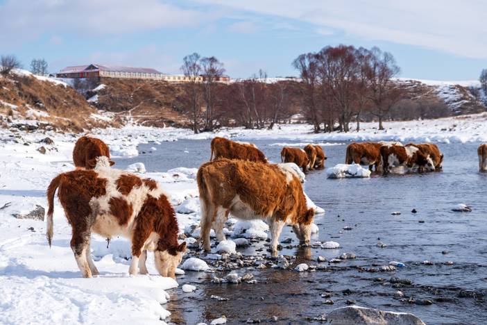 运气好的话,还能看到牛羊在河水中觅食水草。