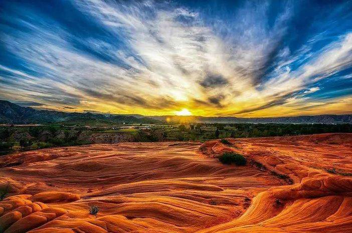 早餐后,我们前往有“大地指纹”之称的【波浪谷】。抵达后,大家舍弃传统景区,走进小众秘境水上丹霞,在这里,可以零距离的触摸到大地的指纹!在黄土高原上行走探秘,徒步踏过上亿年妖娆的红土地,略过绿如翡翠的高原湖泊。微风拂来,碧波伴着黄沙,翩翩起舞。在这里,只怕大多数人都会语言匮乏,无法形容这种地质奇观带来的视觉冲击。经过一亿五千年的风沙洗礼,绝美的丹霞地貌,层层叠叠的红砂岩如同波浪翻滚,让人不得不感叹大自然的鬼斧神工!