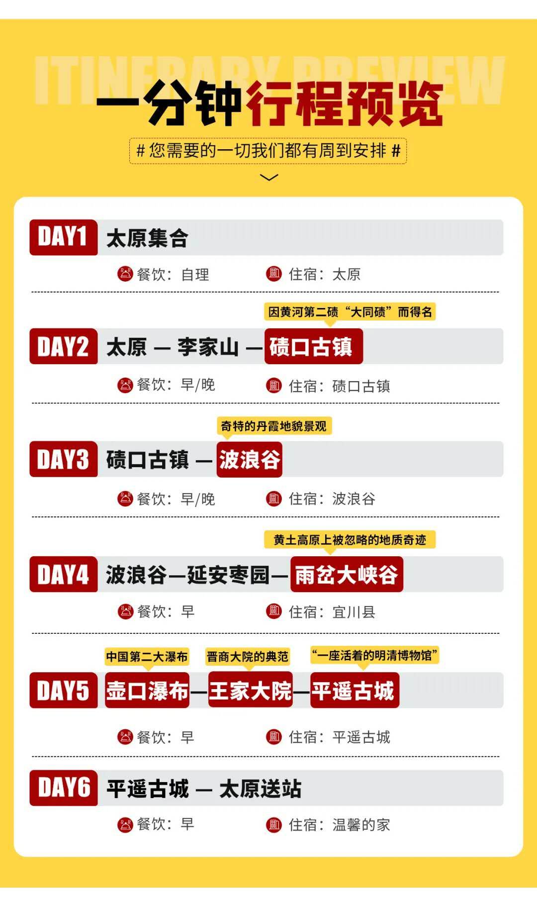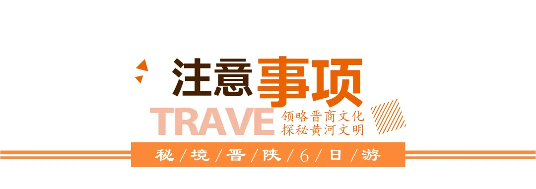 服装:晋陕地区早晚温差较大,请按提示备好所需衣物哦;